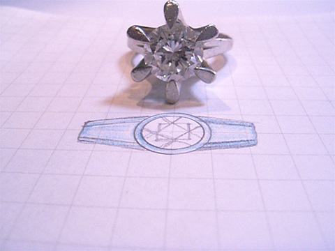 兵庫にお住まいのK様からの依頼です。 3ctのダイヤを使ってメンズリングをデザインしました。 シンプルで着け易い指輪がご希望なので、ダイヤをフリリン留めして ひっかかりのないデザインにしました。完成をお楽しみに!