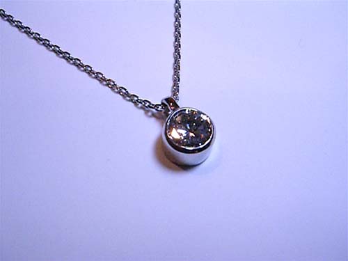 立て爪のリングをお客様がお持ちになってリフォームしたいと相談を受けました。指輪を拝見すると『ほとんど、キズもなく新品の状態です。』シンプルなペンダントだったら着けやすいのでオススメしました。ダイヤが大きいので迫力があります。