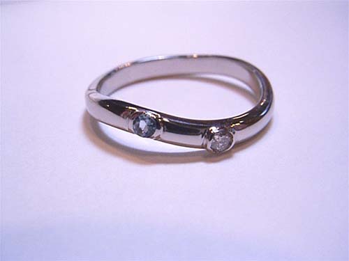 ホームページをご覧頂いたお客さまより2人の誕生石を入れて指輪をデザインして下さいとご相談を受けました。柔らかい曲線にダイヤとアクアマリンを入れるデザインです。お二人の誕生石の色の相性も良かったので、良い出来映えになりました。