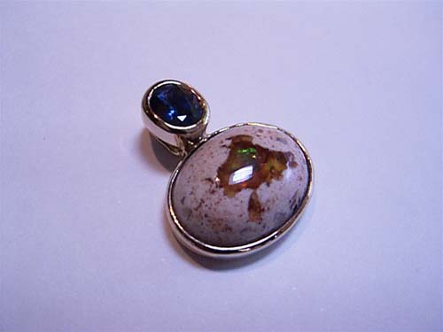 お得意様のT様からオメガチェーンに合うペンダントを作って下さいとご相談を受けました。ボルダーオパールとサファイヤをT様の書かれたデザイン画でお作りしました。センスのいいペンダントに仕上がっております。おしゃれアイテムとして活躍させて下さい。