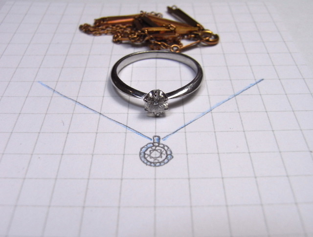 立て爪のエンゲージリングをペンダントに